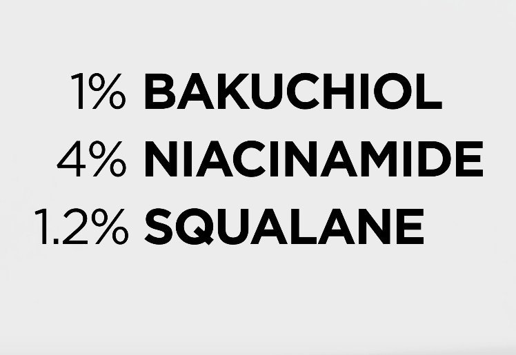1% bakuchiol — plant-derived (Indian babchi) retinol alternative.
